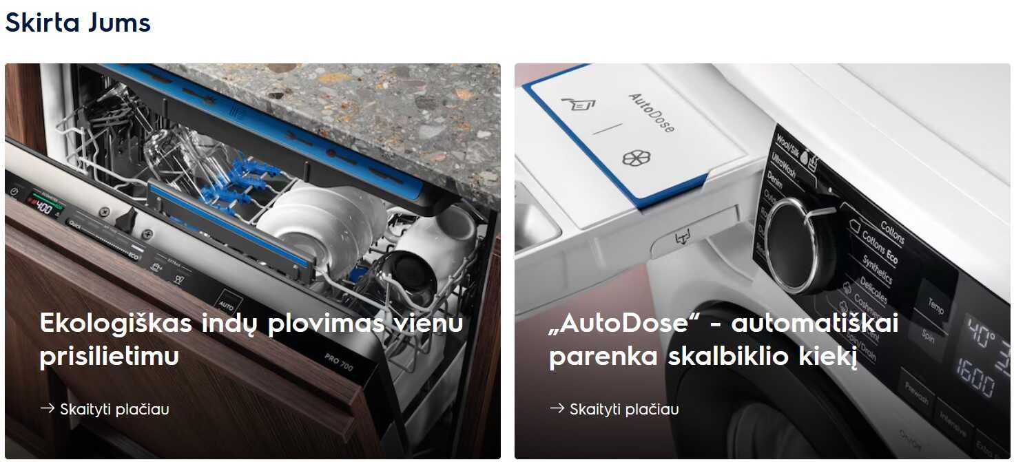 Tokiu būdu klientas gali pasirinkti įrangą visam namų komforto ciklui: gaminimui, laikymui, skalbimui ar valymui. Čia rasite viską, ko reikia patogiai jūsų buičiai užtikrinti, o perkant su Electrolux akcija galėsite įsigyti elektroniką daug pigiau.