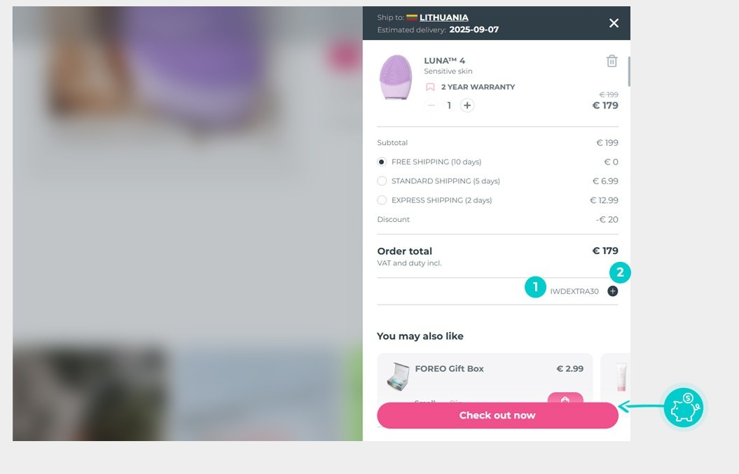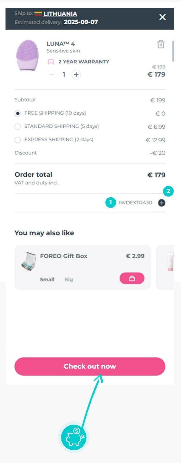 Nežinote kaip tiksliai veikia nuolaidų kodai Foreo.com? Siūlome metodą, kaip greitai ir paprastai pritaikyti nuolaidų kodus perkant: