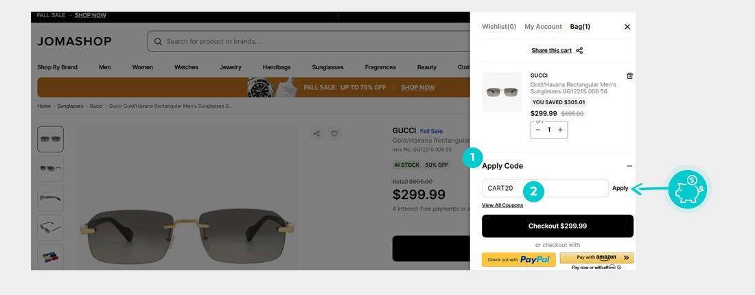 Nežinote kaip tiksliai veikia nuolaidų kodai Jomashop.com? Siūlome metodą, kaip greitai ir paprastai pritaikyti nuolaidų kodus perkant: