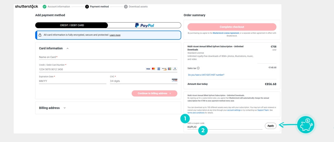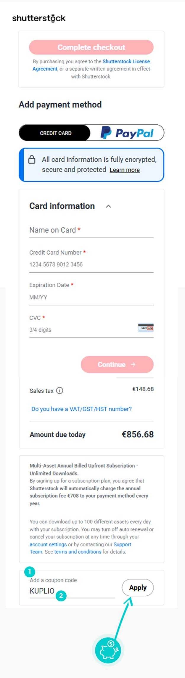Nežinote kaip tiksliai veikia nuolaidų kodai Shutterstock.com? Siūlome metodą, kaip greitai ir paprastai pritaikyti nuolaidų kodus perkant: